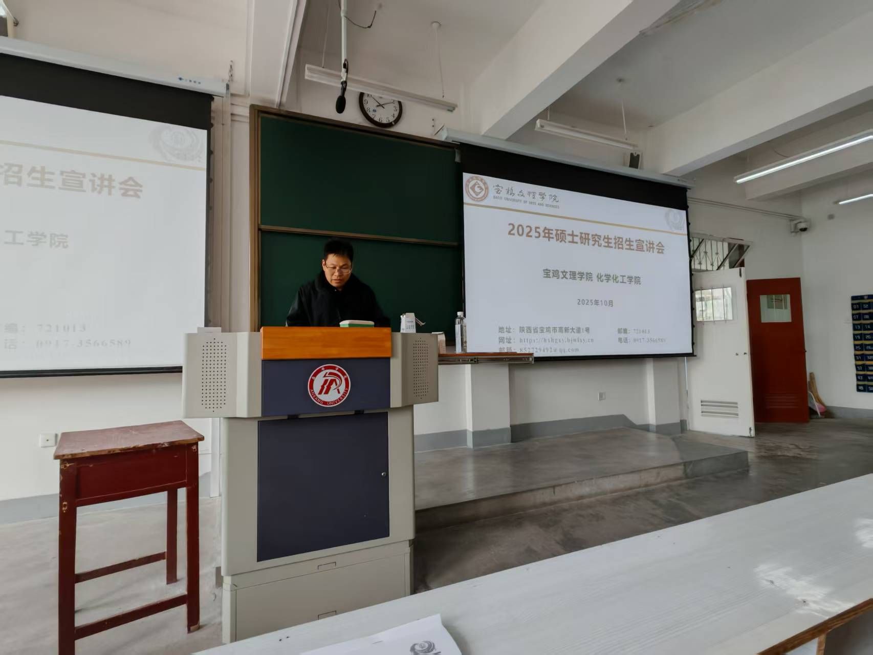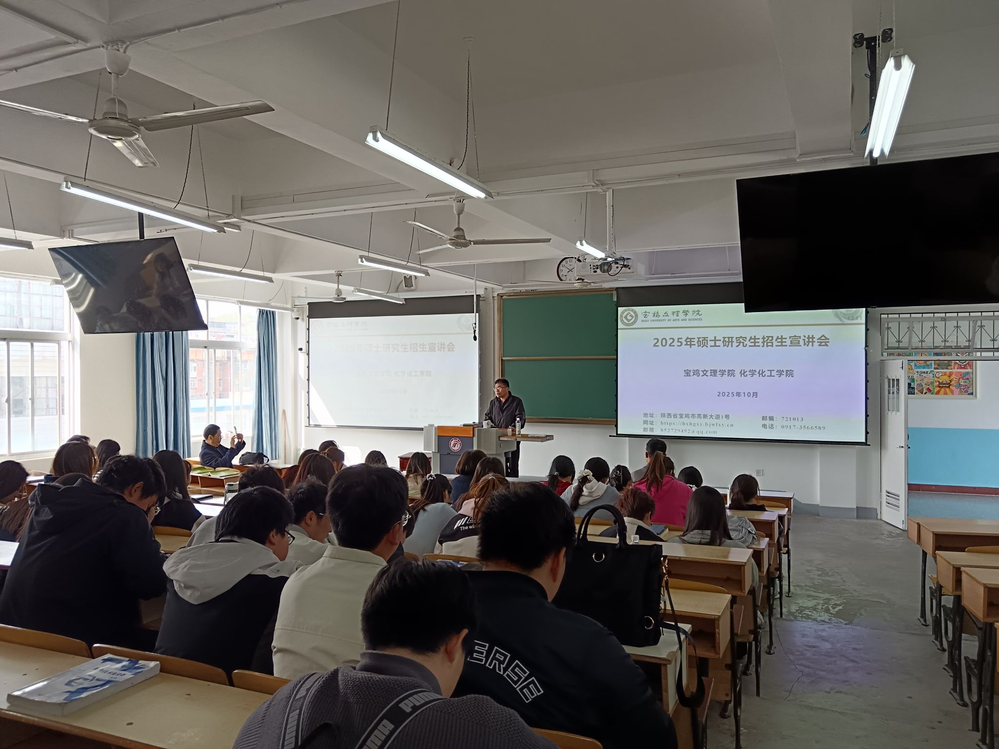 宣讲中,王宏江书记全面介绍了宝鸡文理学院beat365在线唯一官网的学科特色、师资团队、科研条件及就业前景,并详细解读了2025年研究生招生政策,涵盖报考条件、考试科目、奖助学金等内容,同时鼓励学生积极报考。