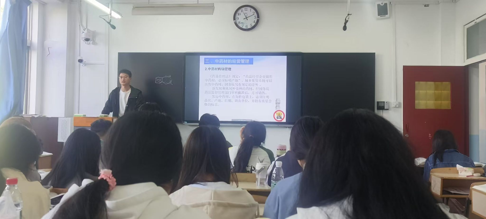 刘涛老师的讲课内容为“中药材的经营管理”和“中药饮片与中成药管理”,依据《中华人民共和国药品管理法》对上述内容进行了讲解,通过案例和习题引导学生讨论总结相关法律法规知识,为大家呈现了一堂精彩的教学观摩课。