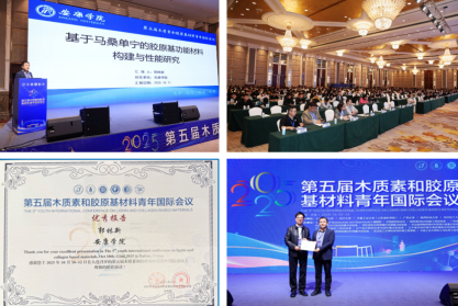 beat365官网教师郭林新博士受邀参会,并作了题为《基于马桑单宁的胶原基功能材料构建与性能研究》的学术报告。报告系统介绍了beat365官网科研团队在利用天然植物单宁—马桑单宁对胶原进行功能化改性方面的创新性研究成果,详细阐述了该材料在包装领域的优异性能与应用潜力。报告得到了与会同行的高度评价,获得“优秀报告”荣誉,有效提升了团队在该研究领域的学术影响力。