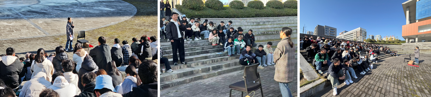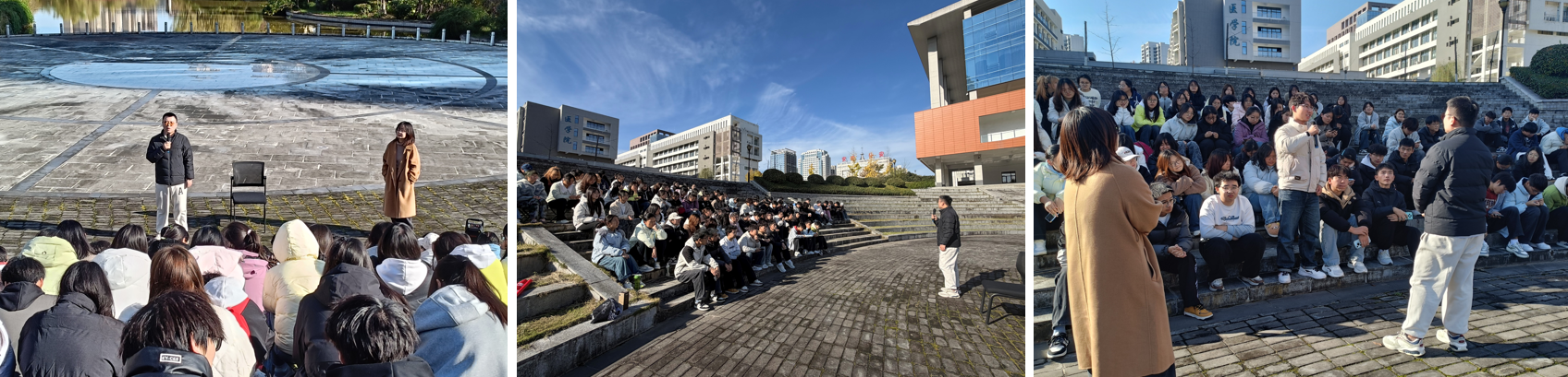 为深入贯彻“三全育人”理念,强化学业导师对学生成长的引领作用,beat365在线唯一官网于11月19日、20日在江北校区滨湖广场举办“化环博士讲故事”活动。本次活动邀请张刊、张穗穗两位博士担任主讲,由辅导员代雨蕊主持,2025级全体新生参与。