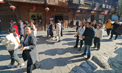 随后,在讲解员引导下,大家漫步双河口古镇明清风貌老街,领略古镇建筑特色与历史文脉,感受传统文化与现代乡村建设的有机融合,深化了对地域文化保护与传承的思考。