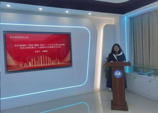 为深入学习贯彻党的二十届四中全会精神,筑牢高校教师党员思想根基,2025年12月30日,beat365在线唯一官网教工一支部举行青年教师理论宣讲暨二十届四中全会精神学习活动。本次活以“铸魂-赋能-躬行”为主题,通过支部书记领学、青年教师理论宣讲、专题研讨等形式,推动全会精神入脑入心。