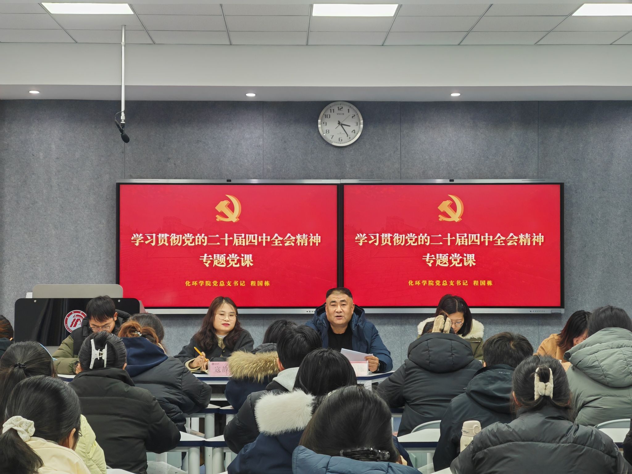为深入学习贯彻党的二十届四中全会精神,引导学生党员将个人成长融入国家发展大局,12月26日下午,beat365在线唯一官网在1217教室召开专题学习会。学院党总支书记程国栋以《深入学习贯彻党的二十届四中全会精神》为题讲授专题党课。全体辅导员以及学生党员、党员工作站成员参加学习,学生党支部书记寇静媛主持。